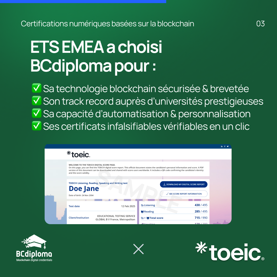- Les raisons qui ont motivé la digitalisation des attestations TOEIC en 2021,