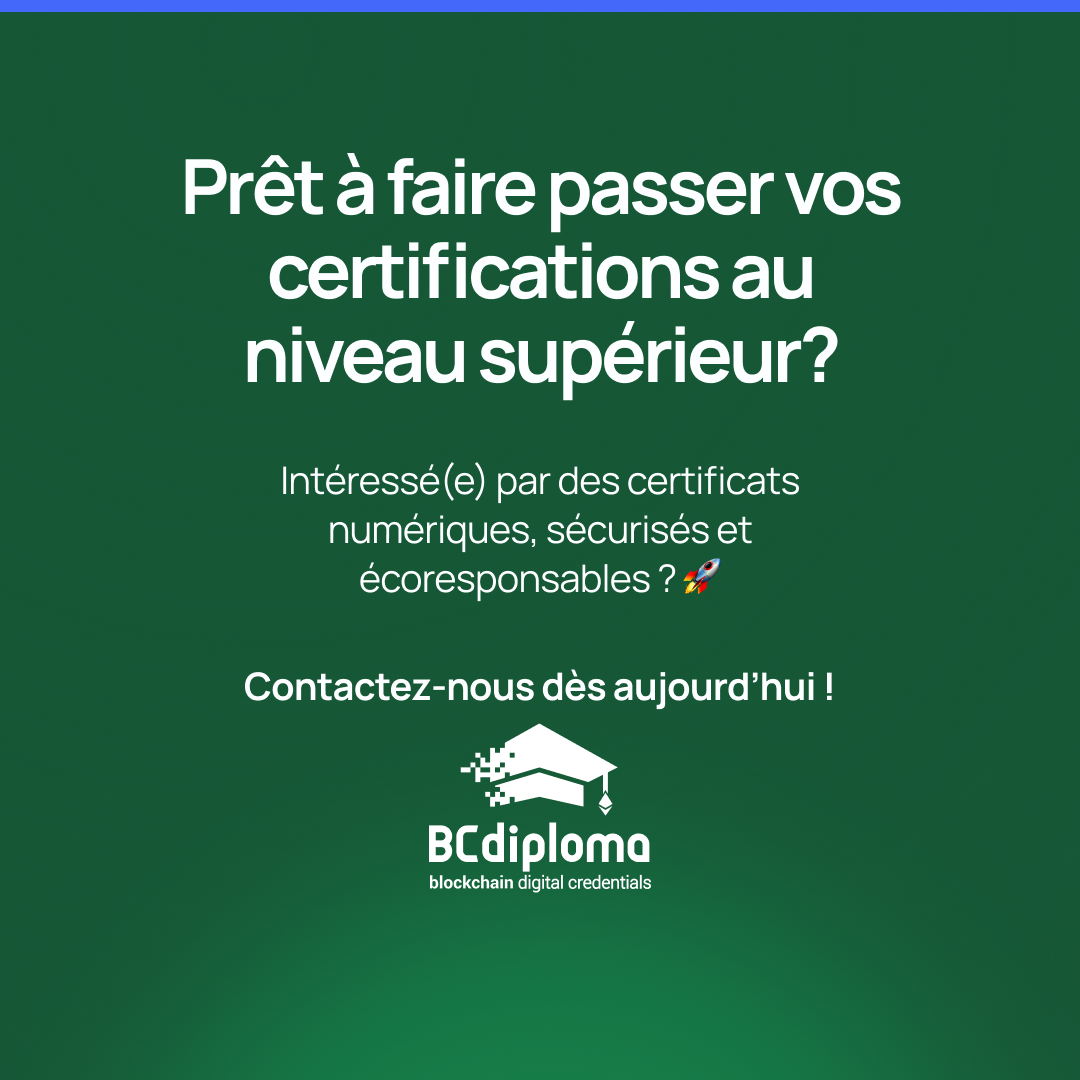 C’est une solution qui garantit l’authenticité des données en attribuant à nos clients et à leurs apprenants, des liens uniques et infalsifiables. C’est à partir de ces exigences que le choix s’est porté sur BCdiploma.